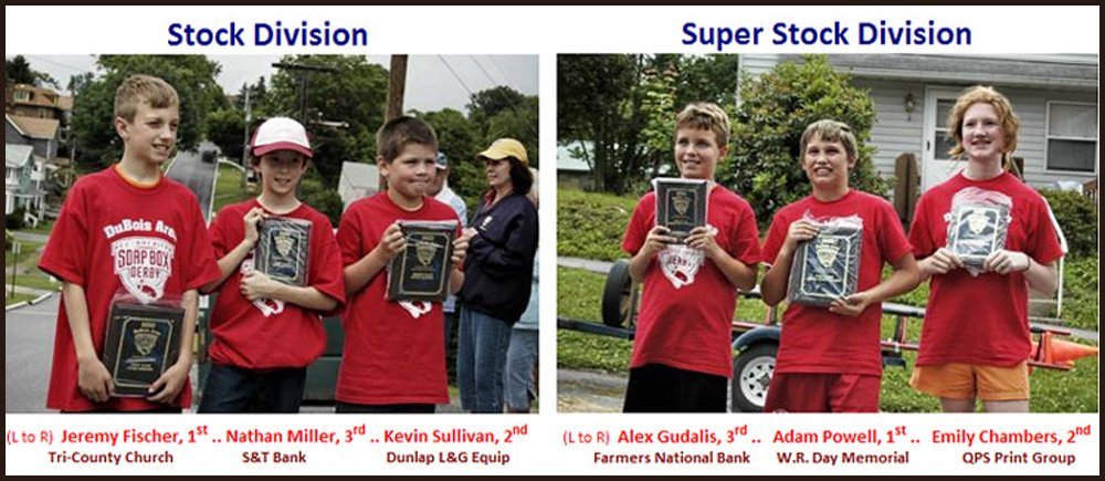 Flashback to July of 2009 >> The DuBois area is celebrating its first All-American Soap Box Derby Champions in over a half century. They are ADAM POWELL and JEREMY FISCHER, the first-place finishers in each of the two race divisions which competed on the West Long Avenue downhill track this past Saturday. Adam and Jeremy will now compete in the International Championships at Derby Downs in Akron, OH, next month on Saturday, July 25, 2009. Good Luck!!