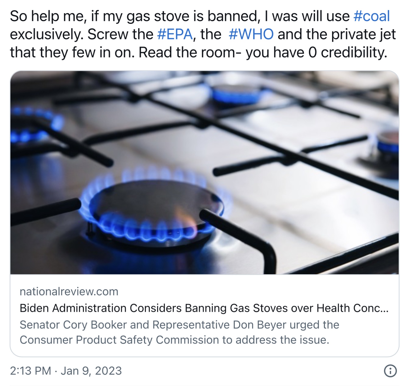 fedup Posted January 10, 2023 Author Posted January 10, 2023 POLITICS Published January 9, 2023 6:47pm EST Gas stove ban 'on the table' for federal agency: reports US Consumer Product Safety Commission consider ban on gas stoves because of harm pollutants cause on respiratory and other health issues For those who want to convert their gas ranges to electric, the Inflation Reduction Act signed in August offers rebates up to $840 for the purchase of new electric ranges. The inclusion was part of about $4.5 billion earmarked for helping low-to-moderate-income households electrify their homes. https://www.foxbusiness.com/politics/gas-stove-ban-table-federal-agency-reports